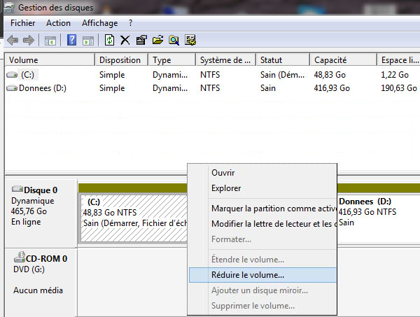 ... Avant de vous expliquer la manipulation, j'ai fait un test sur un netbook et j'ai pu ainsi agrandir ma partition C:\